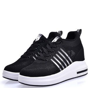 Black Platform Sneakers with White Stripes