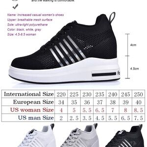 Comfortable black sneakers featuring stylish white stripes. Ideal for everyday wear. European size 38 which is American size 7