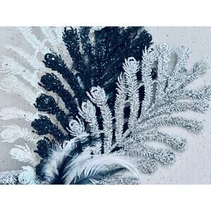Silver & Black Mask with large silver and black feather design on the left side.