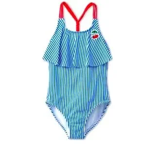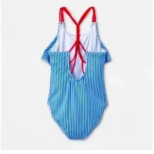 Girls Blue and White Striped Swimsuit