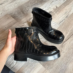 ZARA FLAT CROCODILE-EFFECT ANKLE BOOTS - Size 6 or 36