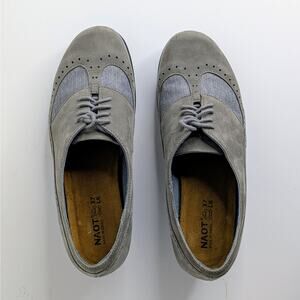 Naot Shoes EU 37 Gray Grey Oxford Low Heel Suede Lace Up Round Toe Comfort Retro