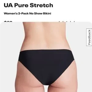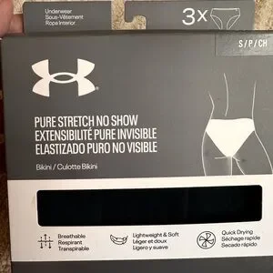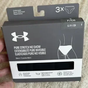 NWT Set of 3 Under Armour Pure Stretch Women's Black No Show Bikini Size Small, Style 1383897, UUSHJ145