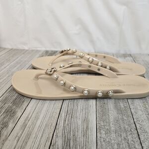 Juicy Couture Women’s Rhea Nude Plastic Sandal Rhinestone Crown Pearl Detail 6