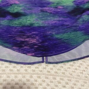 Vibrant athletic tank top with a purple and green pattern. Perfect for working out or day to day relaxing.