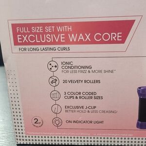 Remington hair rollers with exclusive wax core. Includes purple and pink rollers for lasting curls.
