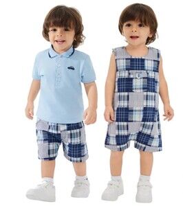 Each set includes (1) sunsuit, (1) short bottom, and (1) short sleeve top