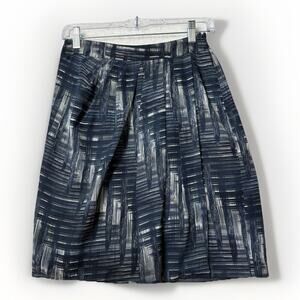 Ann Taylor LOFT Skirt Women Sz 4 Navy Blue Ivory Geometric Pleated Flowy Lined