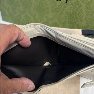 This Gucci wallet showcases a timeless design with its brown and gold color palette, featuring the iconic GG monogram and script Gucci logo Crafted with precision, it offers a compact and structured fold-over style, making it a versatile accessory for any occasion.