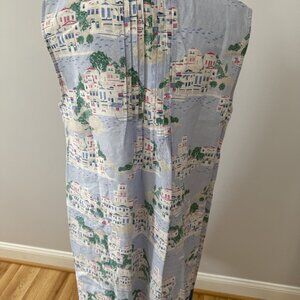 Size 3X this gorgeous linen dress has prints of small Italian Villages. Sleeveless and comfortable for the hottest day, you will look impeccable in this classic summer dress.