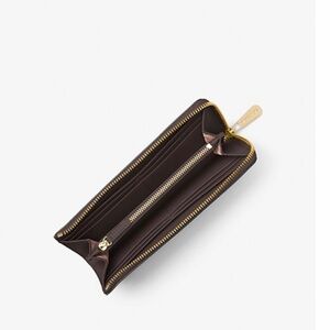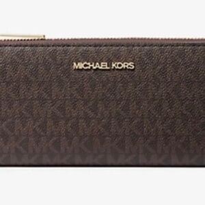 Brand New Michael Kors Quarter Zip Brown Logo Wallet. Signature logo-print canvas.