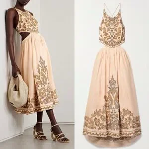 NWT Zimmermann Devi Embroidered Linen Midi Dress