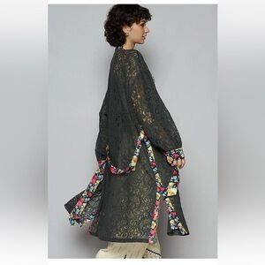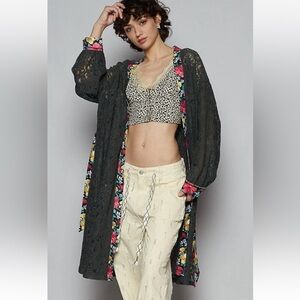POL Charcoal Lace/Floral Belted Cardigan