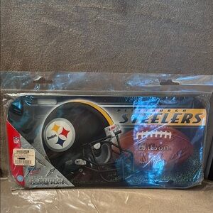 Vintage Wincraft Sports Steelers High Definition License Plate, Black, brown, yellow, blue, red, white colors Purchased at Knoebels