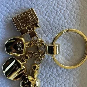 DIOR gold keychain featuring stylish charms. Perfect for adding a touch of luxury to your accessories.