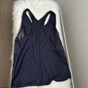 Sleek navy tank top. Breathable mesh sides. Perfect for workouts.