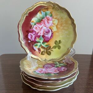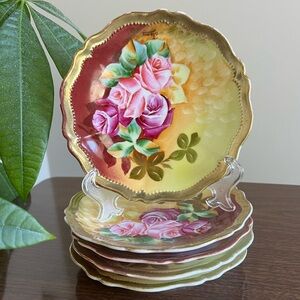 O & E. G. Royal Austria 1 “American Beauty” Floral 24K Gold Trim Plate