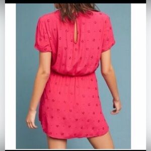 Anthropology Greenbrier embroidered romper in the color raspberry.
