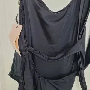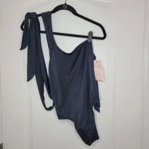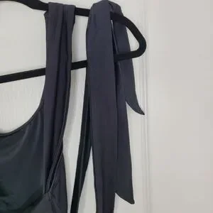 - One shoulder strap with wraparound tie closure