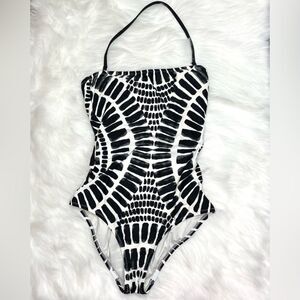 Trina Turk Black and White Algiers Bandeau One Piece Swimsuit Size 4