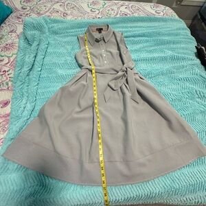 This elegant sundress by Jones New York features a classic dress shirt collar and a tie front for a flattering silhouette. The sleeveless design and midi length make it perfect for both casual outings and work settings. Available in a sophisticated gray stripe, this dress is a versatile addition to any wardrobe.