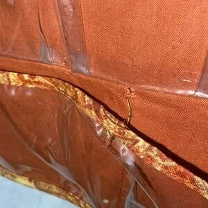 Organizer for all your little trinkets or jewlery has been washed has some ware and tear at one pocket on the bottom but not to bad and it can be a easy fix and some discoloration on the hook but still good to use