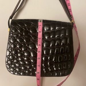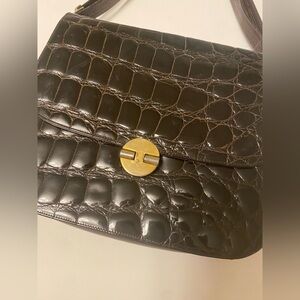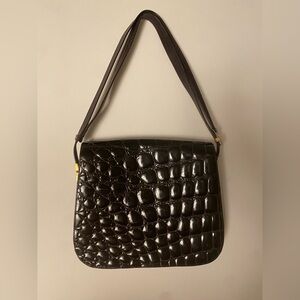 This sophisticated brown shoulder bag features a luxurious crocodile-embossed design. Perfect for any occasion, it combines style and functionality seamlessly. Made in Greece