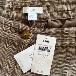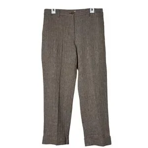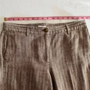 J. Jill Linen & Cotton Herringbone Pants Trousers In Coffee