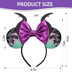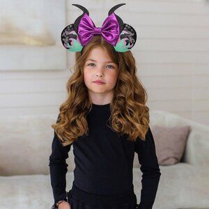 Minnie Mouse Ears Headband, Maleficent Horn Design, Costume Headwear, Purple, On