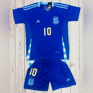 YOUTH Messi #10 Adidas Soccer Jersey Kids Argentina 24-25’ Kit Jersey + Shorts (MEDIUM) (26)