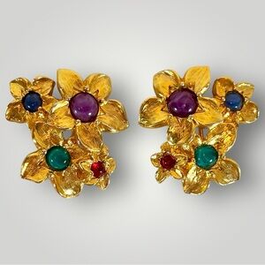 Vtg Avon Gold Tone Multicolor Lucite Flower Clip On Earrings Signed