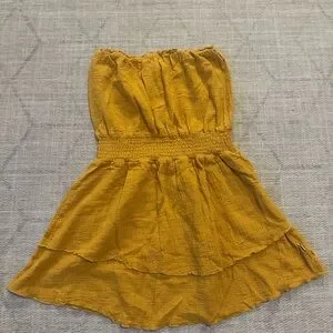 This charming mustard dress is perfect for the beach. Its vibrant color and comfortable fit make it a must-have for your wardrobe. Size medium but fits like a small.