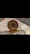 Small antique clock, gold finish, ornate daisy & macintosh rose center face. Circa March 29, 1927, it is a Tiny Tim by Westclox, patents pending at time. Working clock however due to its age there are chips, crackling and missing pieces to the base. Please see all photos.