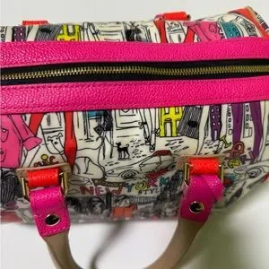 Henri Bendel Pink and Orange Satchel with Graphic Design
