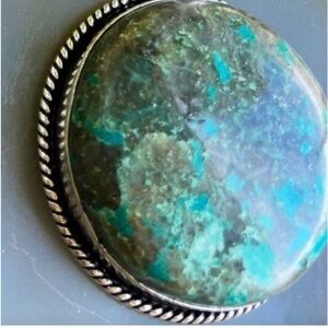 Gorgeous Chrysocolla 925 Silver 2.3" Pendant VTG