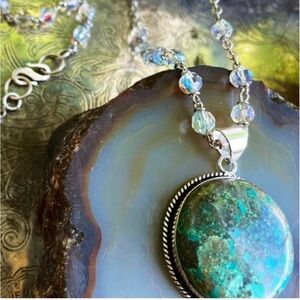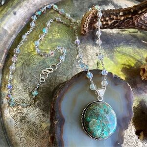 Elegant Chrysocolla Pendant with Aurora Borealis Beads