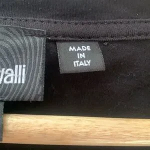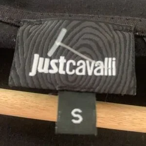 Roberto (Just) Cavalli Top T Shirt Rhinestone Logo Black Small