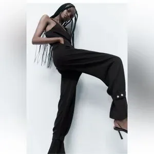 Zara cuffed ankle jumpsuit. Size medium. Black. EUC