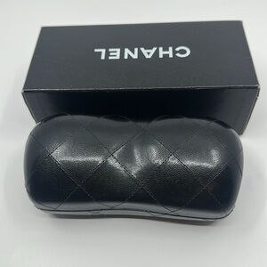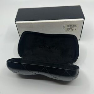 Luxurious quilted black case by CHANEL with box Ideal for protecting your eyewear in style. Quilted case in great preowned condition, box sides has wear shown in photos. OFFERS ARE WELCOME!