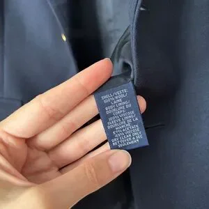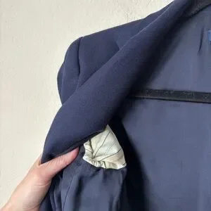 Sophisticated dark blue 100% wool blazer with gold buttons.