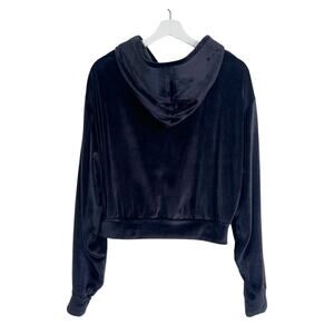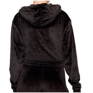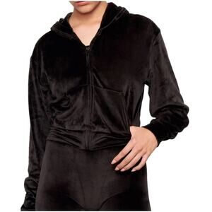 Skims Velour Zip Up Cropped Hoodie in Black