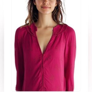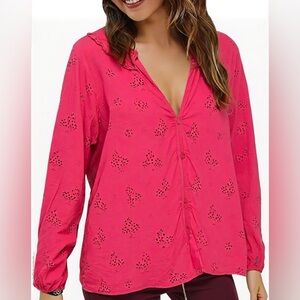 J. Crew Hot Pink Ruched Ruffled Bib Collar Blouse