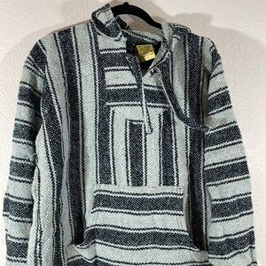 FRANK’S Striped Woven Baja Jacket Coat Hoodie Kangaroo Pocket Size Large Unisex