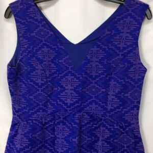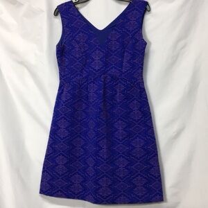 Anthropologie Maeve Averie Blue Aztec Brocade Dress Size 6 Like-NEW, sheath Dress, side-zip, two pockets!! Sleeveless, V-neck