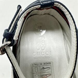 Gucci GG Supreme Blue Monogram Canvas Leather Trim Maryjane Baby Girl Shoes