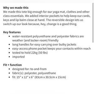 Black plastic tag still attached and extra bag still attached to inner pocket