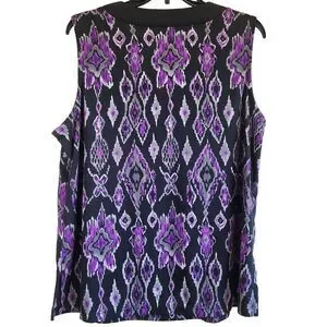 Dressbarn Women's‎ Size 14/16 Purple Black Polyester Geometric Sleeveless Top