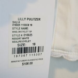 Lily Pulitzer. Size 16. New with tags. Chic white eyelet crop top with delicate straps. Perfect for summer outings.