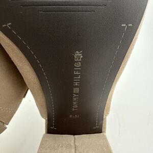 The Tommy Hilfiger Women's Sayna Beige Slide Open Toe Dress Mules Sandals in size 8.5 are a stylish and elegant choice for formal occasions. These sandals feature a chic open toe design with a sliding style for easy wear. The beige color adds a touch of sophistication, while the suede upper material provides a luxurious feel. Perfect for adding a trendy touch to any outfit, these Tommy Hilfiger sandals are a great addition to any woman's shoe collection.