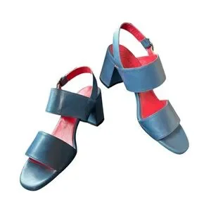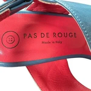 These Pas de Rouge leather heels showcase a striking blue featuring a contemporary two-strap design. The chunky block heel adds both style and comfort, while the slingback with an ankle strap ensures a secure fit. Perfect for adding a pop of color to any outfit, these heels are a must-have for a chic summer look.